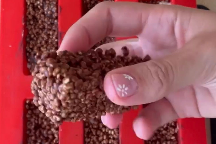- Una vez derretido añades la crema de almendras y el mijo inflado y mezclas muy bien